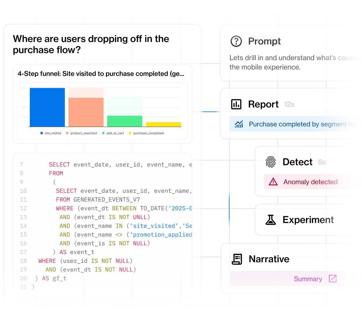 Crystal-clear AI insights into what drives growth and revenue, directly from your trusted data warehouse.