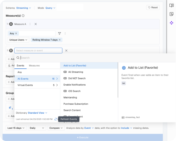 Measure conversions across temporal or non-temporal fields (like sessions) to reflect the unique ways customers interact with your product.