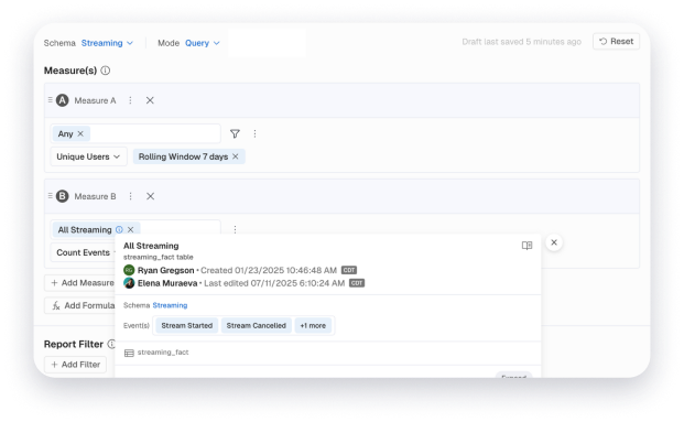 Insights are generated in real time from warehouse data — no caching, scrubbing, or vendor intervention. Teams know exactly how numbers are created, protecting reconcilability and trust.