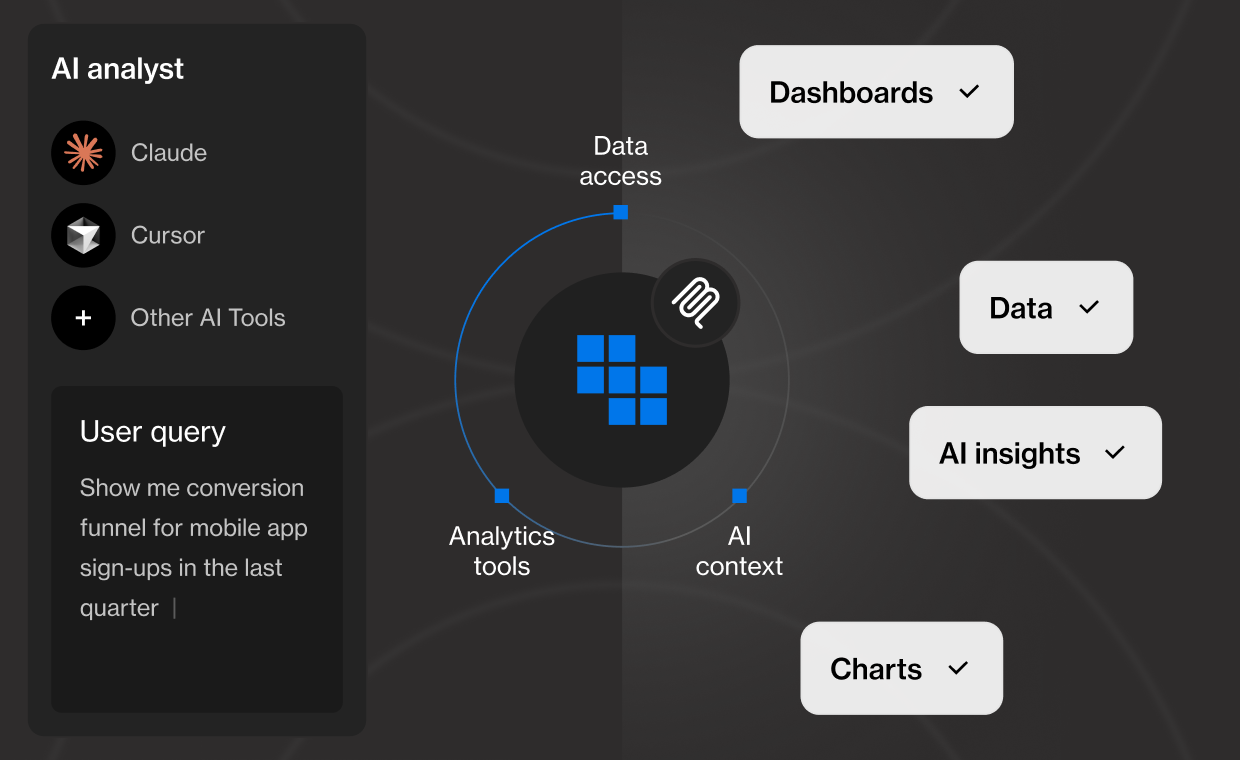 Ask analytics questions directly in Claude or Cursor conversations to get the same context-specific answers you would in Kubit.